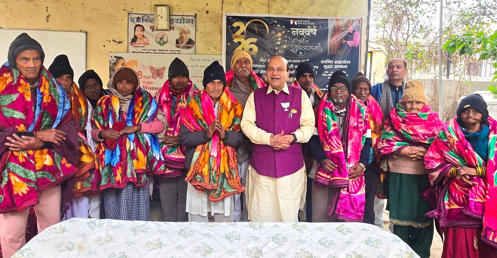 South Delhi, 1st Jan 2026: Former BJP MLA, President Delhi Study Group & Global Bharat Brand Ambassador Dr. Vijay Jolly celebrated New Year 2026 by visiting an old age home and gifting warm blankets, socks and woolen caps to elderly citizens. Dr. Jolly visited "Shanti Sahyog Old Age Home" located at F-16/1504, Sangam Vihar, South Delhi. He invoked joy and laughter among the elderly citizens. He encouraged & motivated them to always remain happy. As in the previous years, Dr. Jolly began the first day of New Year-2026 with this social service & philanthropic act. On the occasion, Dr. Jolly stated that this act of social service is an initiative to awaken the youth and make them aware of their duty towards serving their parents and the elderly. On this occasion, Delhi Study Group members Dilawar Singh, Smt. Satindra Kumari, Vijendar Yadav, and Pramod Kumar were also present along with Dr. Jolly.
