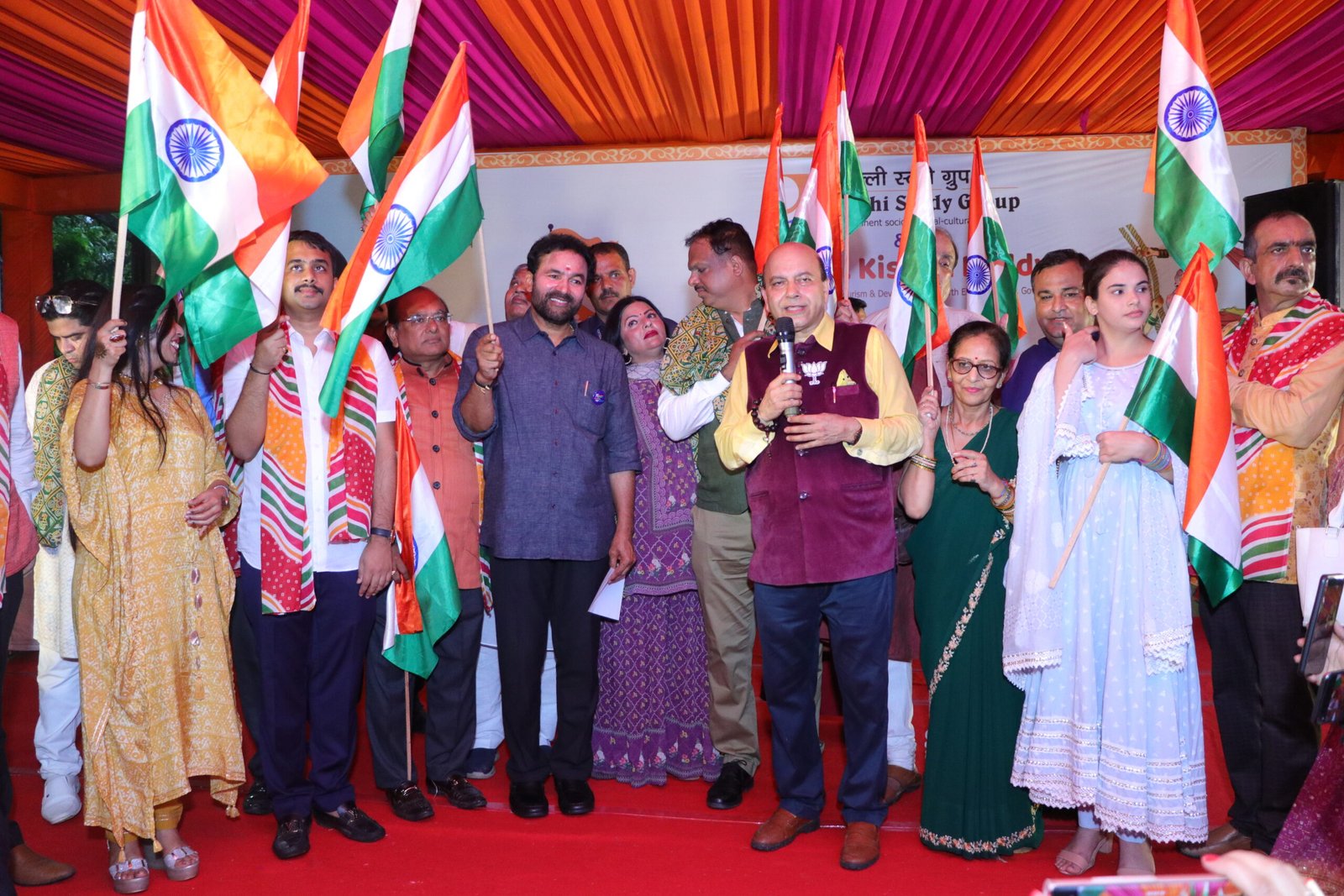 नई दिल्ली, 29 जुलाई 2022ः दिल्ली भाजपा पूर्व विधायक व दिल्ली स्ट्डी ग्रुप अध्यक्ष डॉ. विजय जौली के नेतृत्व में आयोजित सावन तीज कार्यक्रम में ‘‘हर घर तिरंगा’’ अभियान पर 500 भारतीय झण्डे फहराये गये। सभी आमंत्रित अतिथियों ने तिरंगे उत्साह पूर्वक लहराये। इस अवसर पर देश भक्ति गीतों व नृत्यों के साथ आजादी का 75वॉ अमृत महोत्सव मनाया गया। यह कार्यक्रम भारत सरकार में केंद्रीय संस्कृति, पर्यटन व उत्तर-पूर्वी क्षेत्र विकास मंत्री श्री जी. किशन रेड्डी के 6 अशोक रोड, नई दिल्ली आवास पर मनाया गया। प्रधानमंत्री नरेन्द्र मोदी के आह्वान पर हर घर तिरंगा लहराने के अभियान को लागू करने के लिए गैर सरकारी संगठन दिल्ली स्ट्डी ग्रुप द्वारा देश की राजधानी दिल्ली में यह एक बहुत बड़ी पहल है।