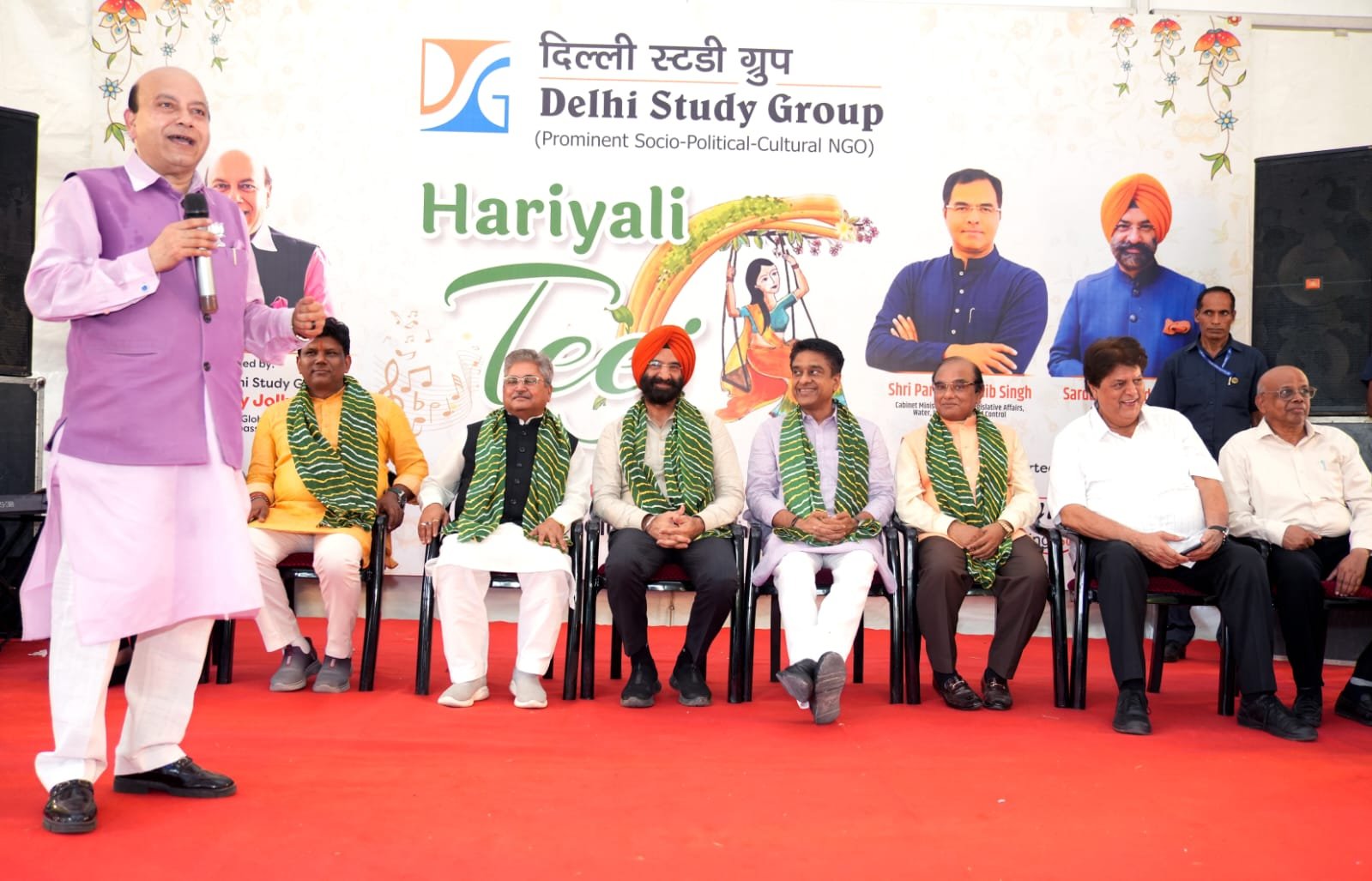 कार्यक्रम का शुभारंभ दिल्ली सरकार के मंत्री प्रवेश साहिब सिंह और सरदार मंजिंदर सिह सिरसा ने किया। इस अवसर पर प्रवेश साहिब सिंह व मंजिंदर सिंह सिरसा ने कहा ‘‘एक पेड़ मॉ के नाम’ सभी लगायें। हरियाली तीज हमारी सांस्कृतिक विरासत का उत्सव है। जो परिवार, परंपरा और महिलाओं की भूमिका को सम्मान देता है। ऐसे आयोजनों से समाज में सांस्कृतिक चेतना मजबूत होती है’’। डॉ. जौली ने अपने संबोधन में कहा ‘‘प्रधानमंत्री नरेंद्र मोदी के नेतृत्व में भारत की सांस्कृतिक पहचान को वैश्विक मंच पर नई पहचान मिली है। दिल्ली स्ट्डी ग्रुप का यह आयोजन भारत की सांस्कृतिक आत्मा को जीवंत करने का प्रयास है’’। प्रसिद्ध गायक प्रेम भाटिया ने बॉलीवुड के मधुर गीत गाये। शशि वर्मा व टीम ने गुजराती डॉडिया नृत्य प्रस्तुत किया। और राधा कृष्ण एवं शिव पार्वति की भक्ति से परिपूर्ण नृत्य ने सबको मंत्रमुग्ध कर दिया।